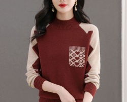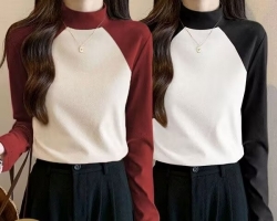 拼色半高領羊毛衫