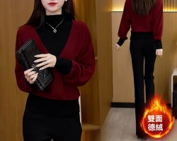 德絨撞色彈力衫