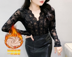 NT$1498這蕾絲打底衫太美了,修身顯瘦版型,單穿吸睛,內搭更顯若隱若現的魅力氣質,加絨保暖,上身柔軟舒適,搭任何外套都有新鮮感詳情 - 時髦氣質打底衫NT$1098