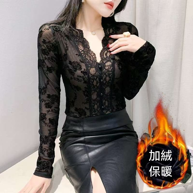 這蕾絲打底衫太美了,修身顯瘦版型,單穿吸睛,內搭更顯若隱若現的魅力氣質,加絨保暖,上身柔軟舒適,搭任何外套都有新鮮感