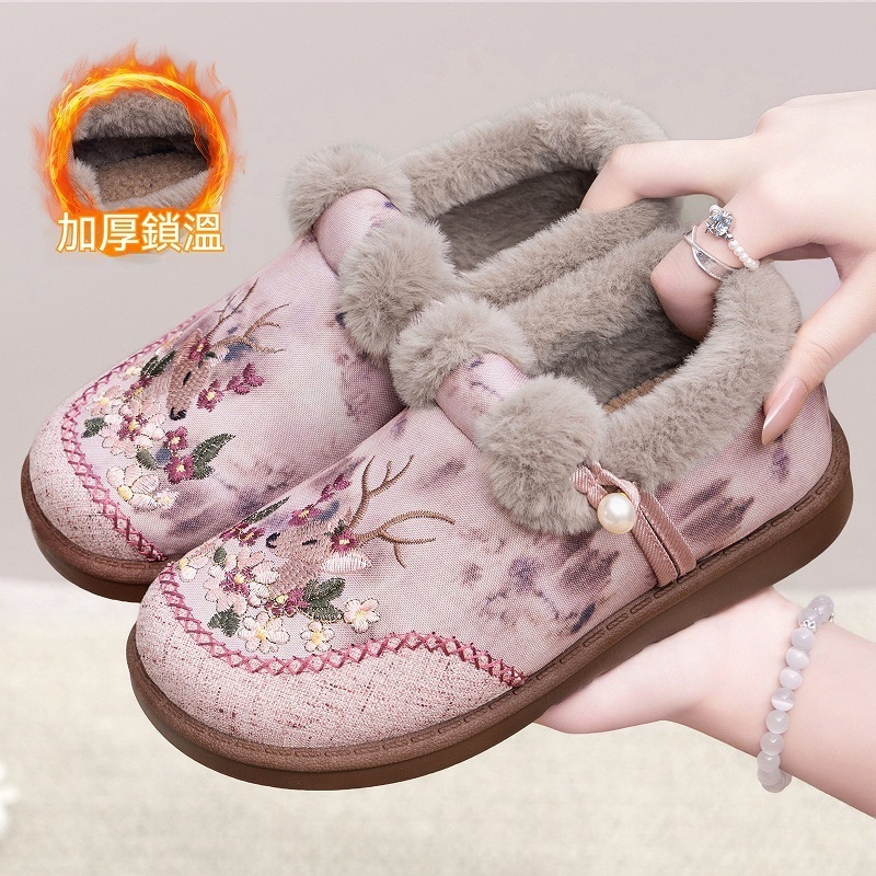 國風繡花 加絨鎖溫,軟底貼合腳型久走不纍,防滑耐磨不悶腳,解決冬季凍腳、穿鞋硌腳、穿搭無特色,居家外出都適配。