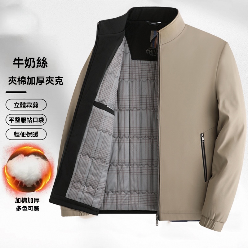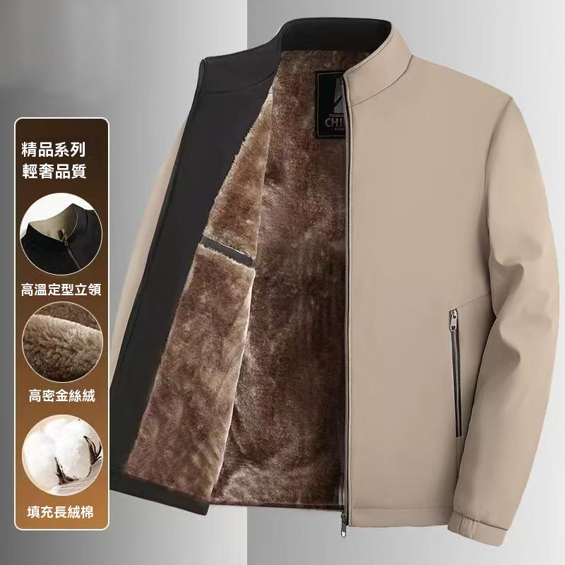 黑金2025秋冬裝男士立領加絨夾克中老年男士商務爸爸裝外套保暖爺爺棉服
