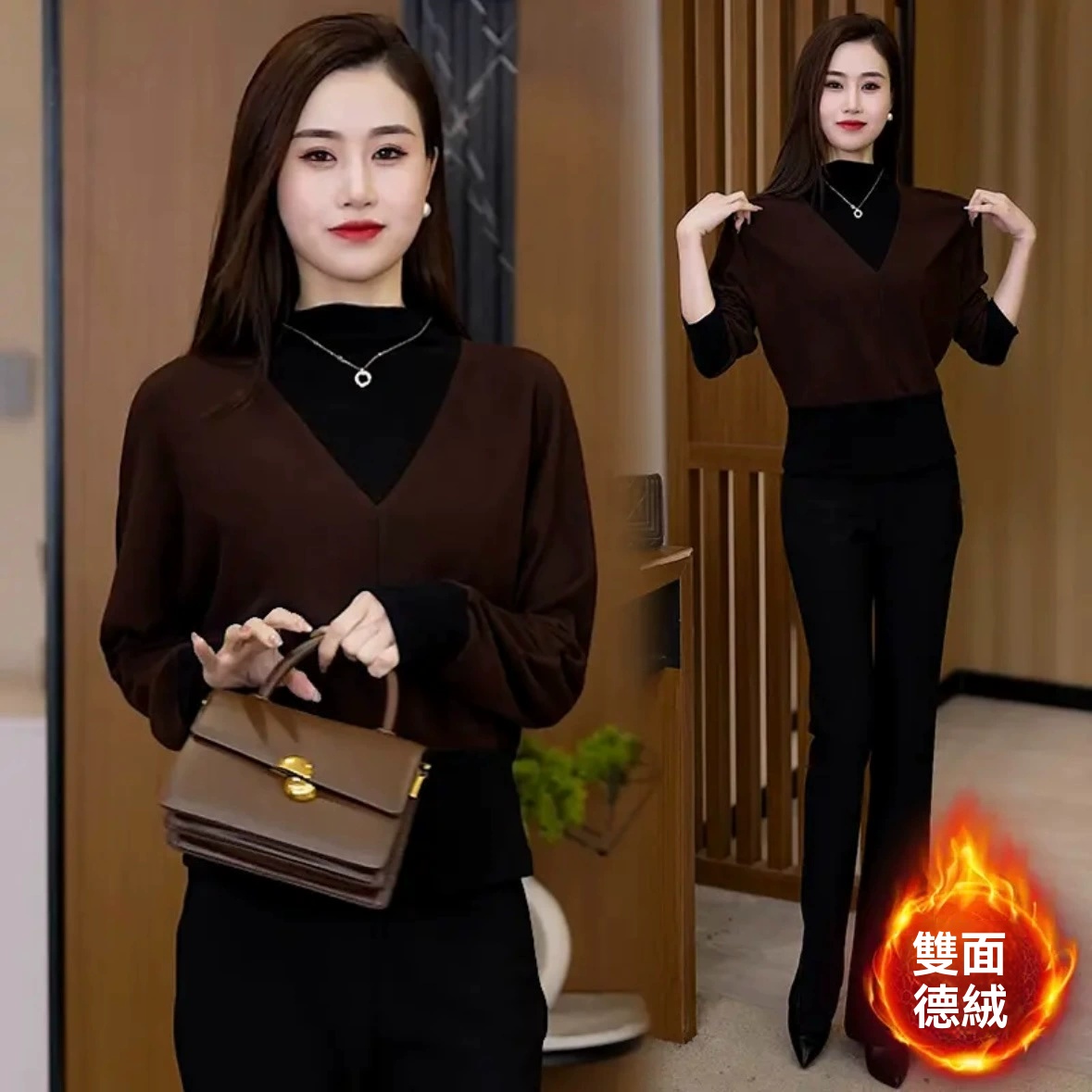 德絨暖感暴擊!假兩件高領打底,一件抵兩件! 高領鎖溫護頸,拼接設計自帶層次感,不用疊穿也時髦~ 親膚柔軟,遮肉藏腰腹,一件穿遍秋冬!