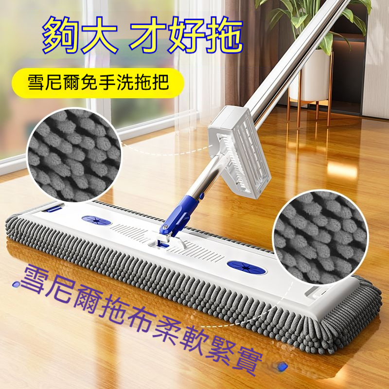 秋冬家務必備神器 免手洗雪尼爾平板拖 大拖頭覆蓋廣 拖布柔密鎖污 一推一拉就清潔 家務省心又省力